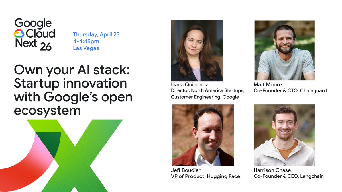 4pm @ #GoogleCloudNext! Catch @hwchase17 at a live panel featuring... ☁️ @Google Director, North ...