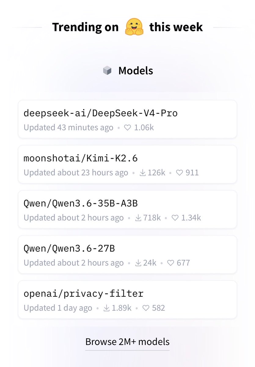 500+ likes in 28 mins. On their way to be the fastest model ever to get to #1 trending on HF! huggingface.co/deepseek-ai/De