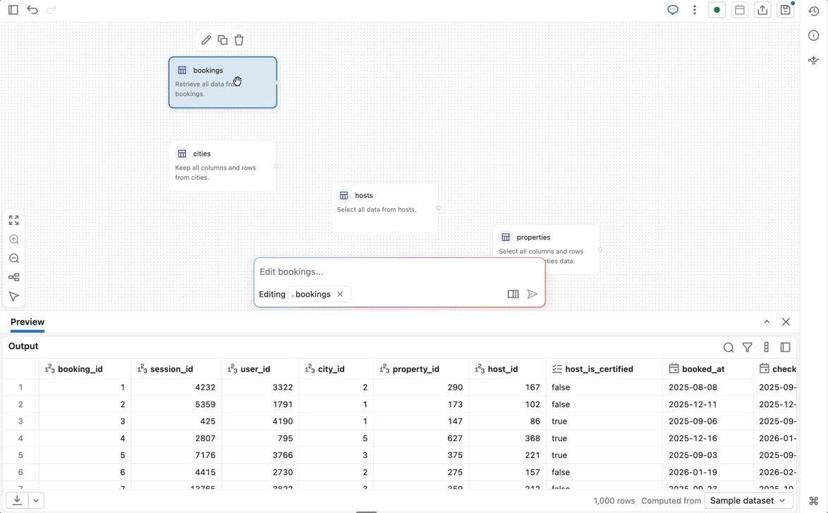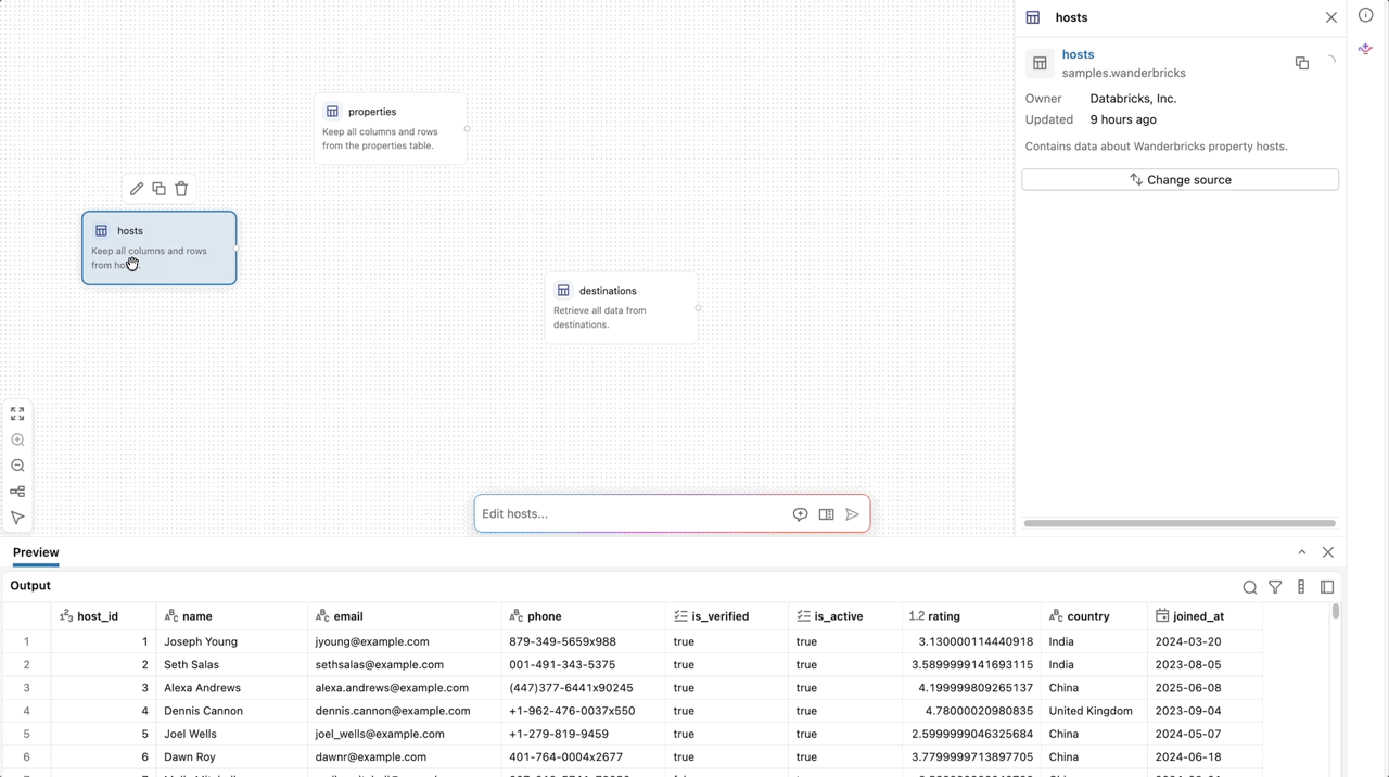 Perhaps just as importantly, Lakeflow Designer makes AI-generated transformations easy to understand and validate by breaking them into discrete visual operators with data previews at every step. You can see exactly what changed, where rows were filtered, how a join was resolved, and what the output looks like before moving on.