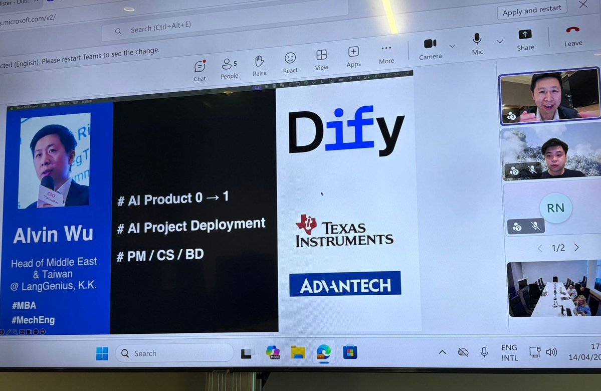 On 4/14, Alvin (Head of Middle East & Taiwan) and Kelvin Tsim (APAC Solution Architect) from Dify we...