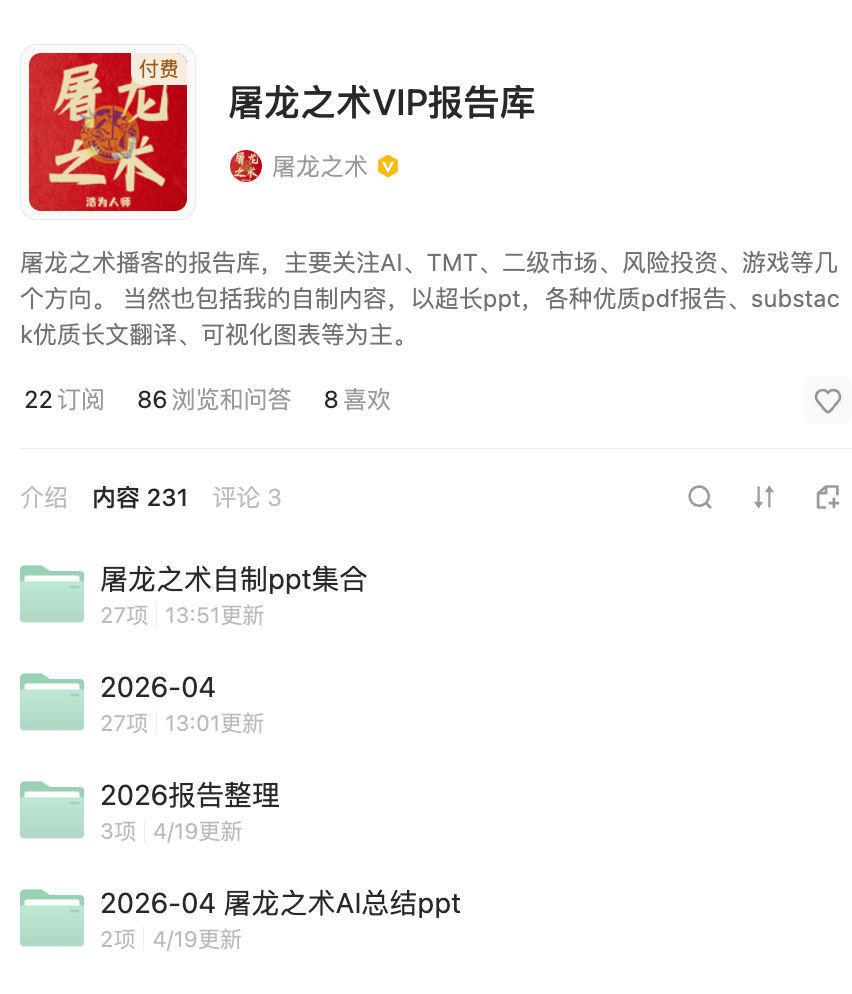 还有我日常看的报告、长文、信息化图表我都整理在了我新做的IMA付费报告库之中。