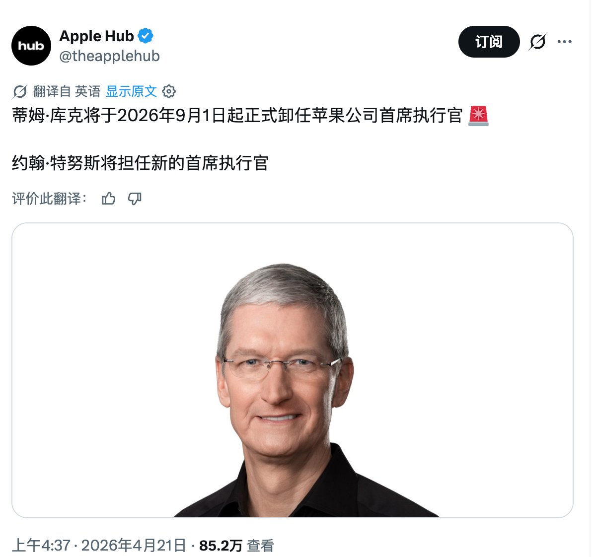 - 所谓“库克2026年卸任”仅为X平台用户转发的未经证实传言。