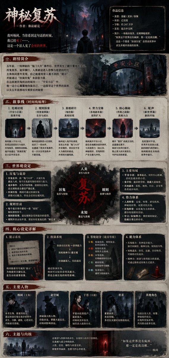 提示词:帮我用一张长图详细地介绍《神秘复苏》这个小说的剧情、故事线和世界观。 https://t.co/arv7oOa0fX" / X