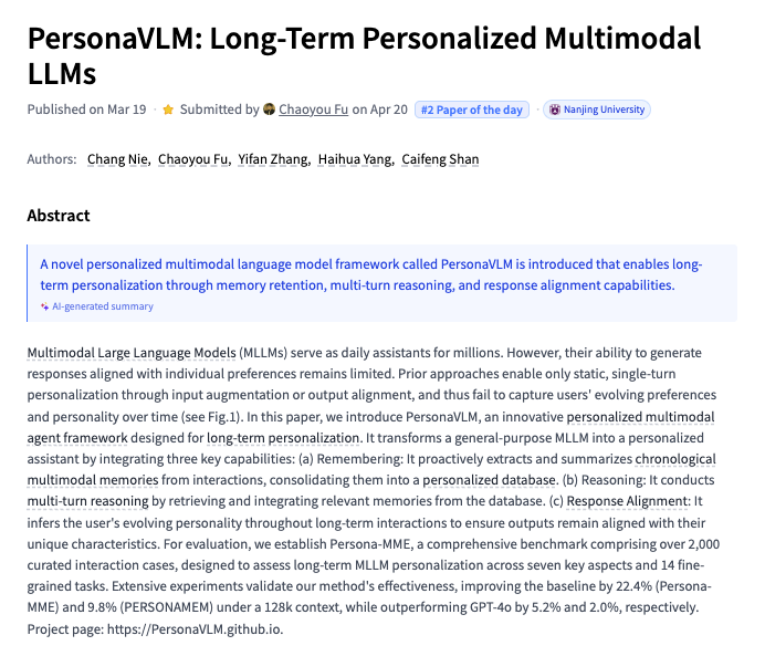 PersonaVLM Long-Term Personalized Multimodal LLMs paper: huggingface.co/papers/2604.13