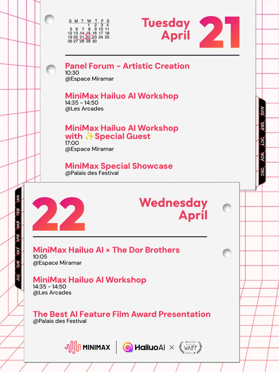 !Image 3: 🇫🇷MiniMax Hailuo AI x World Ai Film Festival 2026 at Cannes!Image 4: 🎥 Join us at WAIFF Cannes, experiencing the perfect fusion of AI and cinematic art. In the picturesque seaside city that lives and breathes film, we'll invite special guests for a series of unmissable events. #WAIFF#MiniMax#Hailuo