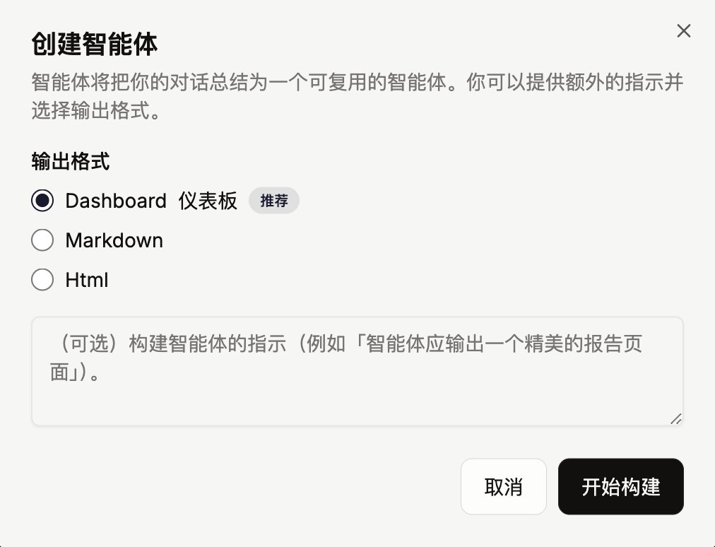 你跟 AI 把一件事聊明白、跑通一次,然后就可以存下来 变成一个"Agent"(小帮手)