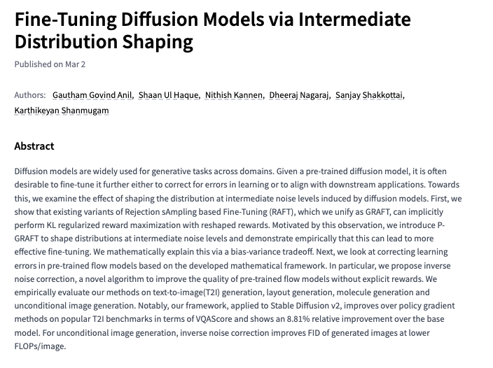 Fine-Tuning Diffusion Models via Intermediate Distribution Shaping paper: https://t.co/XbWLf5uN3O
